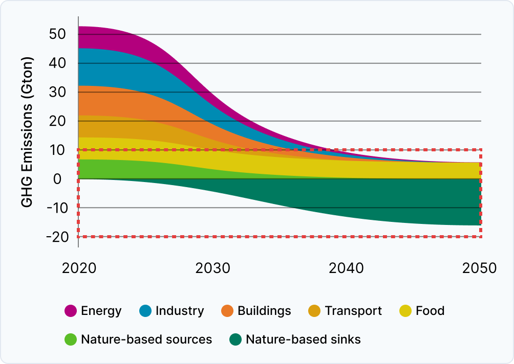 Only by decarbonizing the food economy, and using nature-based sources and sinks, can net zero be achieved. (Source: The Exponential Roadmap Initiative)